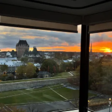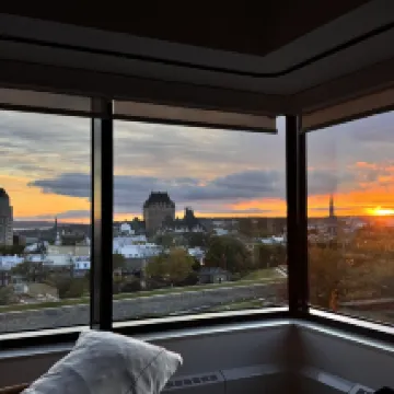 이번 추수감사절에 친구들과 퀘벡에 와서 동화 같은 분위기를 만끽하려고 코너 킹룸을 예약했어요. 퀘벡 시티의 아름다운 풍경을 360도로 막힘없이 감상할 수 있어서 정말 그만한 가치가 있었어요! 친구가 예약한 일반 시티뷰보다 훨씬 더 놀라웠어요! 특히 아침에 퀘벡 일출을 보는 순간은 정말 환상적이었어요! 🌅 amazing!