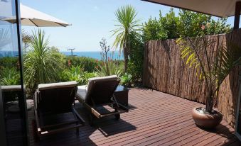 Gorgeous 2 bedroom apartment with views of the Tasman Sea. Located near Whale Bay, walk to the surf in minutes.