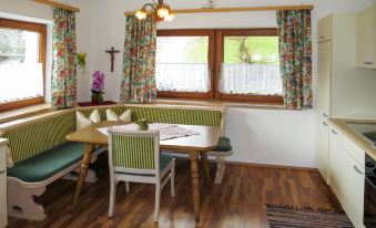 The holiday apartment is well equipped and is beautifully located above the valley. The ski bus runs less than 100m from the door to the Horbergbahn.