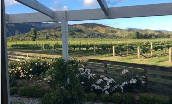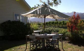Riverbank cottage was originally the lean-to off the main homestead. In 2002 we moved it across the garden rebuilt it and lived there happily while the homestead was renovated. The cottage faces northeast overlooking our vineyard towards the Richmond ranges. It is within a stones throw of the Wairau River.