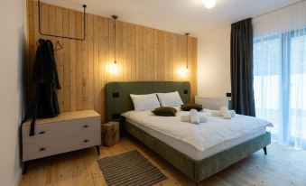 This villa's standout features are it's full sized glass facade facing the Bucegi Mountains, the hot tub and fireplace. Guests will find a stovetop, a refrigerator, a dishwasher and kitchenware in the well-equipped kitchen. The villa also comes with a barbecue area and an outdoor fire pit. Boasting a terrace with garden views, this villa also features a private entrance and a flat-screen TV with streaming services. The unit has 4 beds.