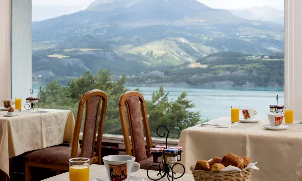 Bon accueil au téléphone de Franck a la réservation. Hotel bien situé avec parking gratuit. Jardin très agréable avec une vue imprenable sue le lac. Petit salon cosy bien décoré. Nous avons eu la chambre 222 rénovée avec un lit en 160. Une très belle vue sur le lac. Elle s'est juste à côté du restaurant mais cela nous a pas dérangés. Il n y a pas de coffre mais nous n en avons pas eu besoin. Bon petit déjeuner avec produits frais, gâteaux et brioches faits maison. Charcuterie, fromages du pays. Fruits secs, salade de fruits, yaourts. Repas pris au restaurant avec une bonne cuisine, plats bien présentés. De belles salades avec spécialités locales. Félicitations a tout l équipe. Merci à Nicolas pour le chek in. Nous reviendrons.
