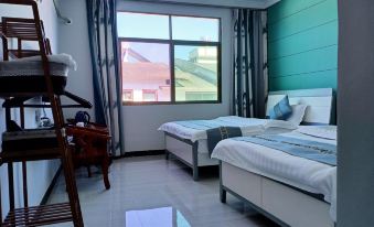 房間和圖片一致,房間很大,有一個很大很明亮的窗户,很加分!裝修風格簡單大氣。床上用品很乾凈很乾爽,兩張1.5米的大床,睡得很舒服。廁所非常大,設施和用品齊全,最讓我驚喜的是廁所是蹲廁,不是坐廁(我總覺得坐廁很不乾淨、很難受)。連鑰匙扣都做得非常精緻。各種細節,都看得出來,店家很用心。老闆很和氣、很熱情,主動向我們介紹遊玩路線。