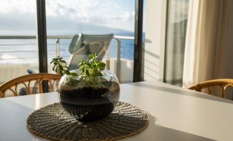 The panoramic balcony and the view from the bedroom, living room and kitchen are undoubtedly the apartment's differentiating factor. Facing the Atlantic Ocean and the imposing and beautiful north coast of the island, the space invites you to enjoy a meal in the light of a magnificent sunset.
