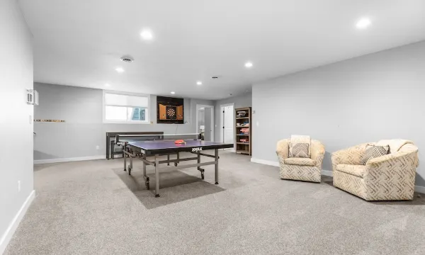 Indoors there's an area to socialize on each level of the house, including a "theater" area and game room with ping pong table and darts. Air hockey table in the garage does not need coins to operate.