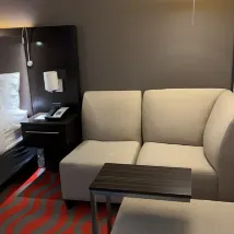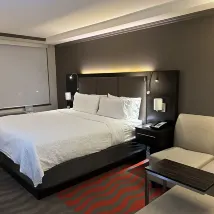 공항부터 호텔 셔틀버스를 이용하면 약 15분 정도 소요됩니다. 셔틀버스는 30분 간격으로 운행되며, 매시 정각과 매시 30분에 공항에서 출발합니다. 프런트 데스크에서 신속하게 체크인을 하고, 다음날 아침 공항으로 가는 셔틀을 예약했습니다. 객실은 깨끗했고, 무료 커피와 차, 전자레인지, 작은 냉장고가 있었습니다.