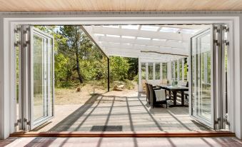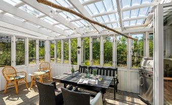 Single-family house, built in 1971. 1.8 km from the sea. For shared use: garden. Private: natural state property 2'279 m2, garden (fenced). Terrace (60 m2), children's playground (swing). In the house: table football, washing machine. Parking at the house. E-charging station. Grocery 1.8 km. Golf course 500 m. The owner does not accept any youth groups. "Mirva" - 800m to the fjord", 3-room house 98 m2. Object suitable for 6 adults. Living room with TV, radio, CD-player, hi-fi system and DVD. 1 room with 1 double bed. 1 room with 1 double bed. 1 room with 1 double bed. Kitchen (oven, dishwasher, 4 ceramic glass hob hotplates, freezer). 2 showers/WC. Terrace 20 m2, roofed. Facilities: children's high chair. Internet (WiFi). Please note: non-smokers only. Maximum 2 pets/ dogs allowed. 760-8222