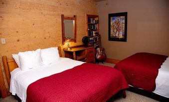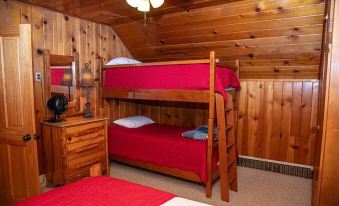 The Ranch House offers a fully equipped kitchen and outdoor grill, two full bathrooms, a snack bar and dining room with gas log fireplace, living room with satellite television and five bedrooms — including 7 double beds, one single bed and one set of bunk beds. The Ranch House comes stocked with linens and towels. On site laundry facilities are also available for our guests’ use.