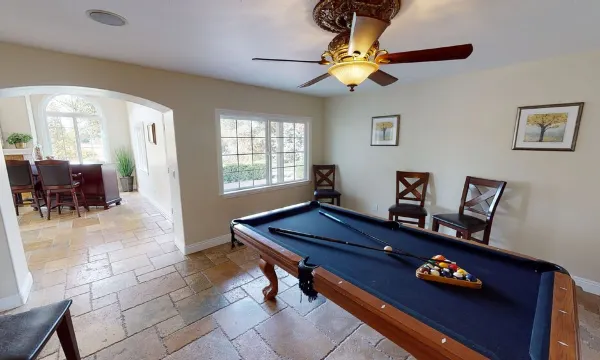 Venture out to the back of the home to our all custom paver patio complete with outdoor dining tables that seat up to 12 people, outdoor couch set seating up to 8, and bistro set off the Main Master Suite that seats 2. Enter into our gated pool area where the pool deck offers lounging & tables. From this lounging area you over look Carter Estates Vineyard, the top of Lormiar Winery and South Coast in the distance. While others can take a dip in our refreshing pool or a soak in our jacuzzi. Also don't forget in our 2 car attached garage to the home we do have an outdoor pingpong table that you can set up to play in the garage or breezeway!