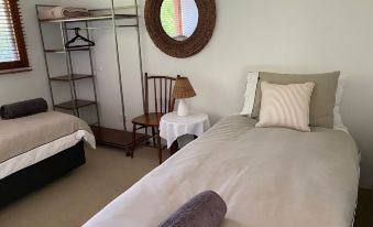 'The Shelter' offers guests 1 king bedroom, 1 queen bedroom, and a third bedroom offers 2 king single beds or a king bed if required.all beds are made up with crisp quality linen.