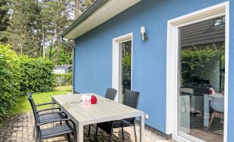 Holiday village "Müritz Ferienpark Röbel", surrounded by trees. 100 houses in the resort. 2 km from the centre of Röbel, on the outskirts, 15 km from the centre of Klink, 20 km from the centre of Waren, 250 m from the lake, in the countryside. In the complex: reception. E-charging station. Supermarket 2 km, restaurant 150 m, bus stop "Unter den Kiefern" 50 m, grass beach 350 m, indoor swimming pool 2 km. Marina 1.5 km, golf course (18 hole) 15 km, tennis 15 km. Nearby attractions: Müritznationalpark 25 km. The owner does not accept any youth groups. The houses are located 100-350 m from the beach, depending on the location. 3-room apartment 65 m2, on the ground floor. Modern furnishings: living/dining room with satellite TV (flat screen), radio and CD-player. Exit to the terrace. 2 rooms, each room with 1 double bed (2 x 90 cm, length 200 cm). Kitchenette (oven, dishwasher, 4 ceramic glass hob hotplates, toaster, kettle, electric coffee machine). Bath/shower/WC, Sauna. Gas heating. Terrace. Terrace furniture, barbecue (portable). Facilities: children's high chair, baby cot (extra). Internet (WiFi, free). Parking (1 car) at the house. Please note: suitable for families. Non-smokers only. Maximum 1 pet/ dog allowed. Private entrance, smoke alarm.