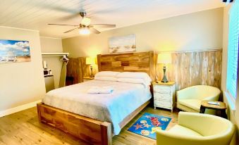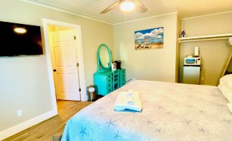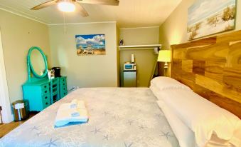 Cute cottage in the heart of Rockport. Located just a short walk to the city pier, Rockport Beach and the City Festival Grounds. This quaint cottage has a King size bed and a Full bathroom with a tub/ Shower. There is also a small kitchenette with a Kuerig coffee maker, microwave and mini- fridge. Coffee cups, linens and towels are provided. This is the perfect place to stay when enjoying an exciting fishing trip, Romantic getaway or just some time at the beach. This cottage is also pet friendly, has a Community BBQ area and fast speed Wifi