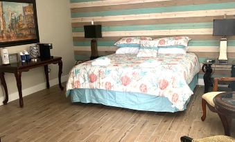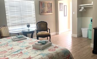 Cute cottage in the heart of Rockport. Located just a short walk to the city pier, Rockport Beach and the City Festival Grounds. This quaint cottage has a King size bed and a Full bathroom with a tub/ Shower. There is also a small kitchenette with a Kuerig coffee maker, microwave and mini- fridge. Coffee cups, linens and towels are provided. This is the perfect place to stay when enjoying an exciting fishing trip, Romantic getaway or just some time at the beach. This cottage is also pet friendly, has a Community BBQ area and fast speed Wifi.