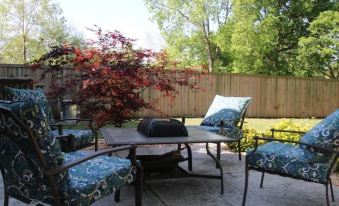 Original hay barn for the historic home, circa 1894. It has been converted into an apartment with kitchen, bathroom, queen bed (located upstairs) and sitting area. It is 500 sq. feet. Covered parking. 6 miles to AMP, close Beaver Lake, Lake Atalanta, bike trails, restaurants, museums, airport, & shopping. fenced yard w/ private outdoor space with firepit. (FIREWOOD IS NOT PROVIDED) If the space is not available for the dates needed take a look at my other listings.