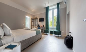 Posizione ottima, a 3 minuti a piedi da piazza del popolo. Si trova anche parcheggio per l'auto per strada sulle strisce blu al prezzo onesto di 8€ al giorno. Abbastanza silenziosa visto che si trova anche in una strada per nulla trafficata. La camera è grande ma davvero mal arredata. E' una stanza abbastanza spaziosa ma manca qualsiasi appoggio. Non c'è un mobile dove mettere vestiti, c'è solo un piccolo attaccapanni ed una piccola scrivania per metà poi occupata dal set da caffè. In bagno peggio ancora, manca qualsiasi appoggio per gli asciugamani e qualche mensola dove riporre il beauty e lo shampoo nella doccia. C'è spazio a sufficienza per aggiungere altri suppellettili senza che la stanza risulti piccola o claustrofobia. Completamente da rivedere!!! Il prezzo anche è stato caro. Sarà la posizione, sarà che la struttura è nuova, sarà stato il periodo di pasqua, ma 200€ a notte per una camera (senza colazione) mi sono sembrati abbastanza cari.