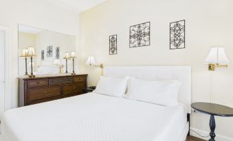 A plush king bed, 2 flat panel televisions, and a sofa bed. The kitchenette is equipped with granite countertops, a coffee maker, toaster, microwave and refrigerator. The bathroom features a shower and a well-lit vanity. Wireless high speed Internet service and cable television are included.