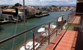 The view from the apartment and from the terrace is magnificent: on the canals in the foreground, the sea in the background and the mountains to the west.