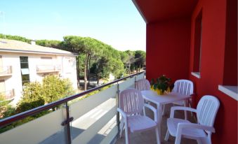 Charming apartment on the 1st floor with lift, located just 500mt from the beach and 50mt from the center (Viale dei Pini). It can accommodate up to five guests. The apartment includes a living/dining room with a kitchenette and a sofa, a bedroom with a double bed plus a single bed, a bedroom with a bunk bed, a bathroom with shower, and two spacious balconies. The space is equipped with: TV-sat, free Wi-Fi, washing machine, dishwasher, A/C, mosquito nets, and one uncovered parking space per booking.°Pets are not allowed. °Photos are generic and representative of the accommodation type (furniture, decor and colors may vary).