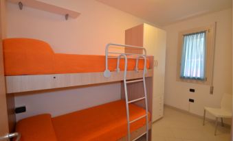 Recently built ground-floor apartment with a private garden for up to five guests, located just 500mt from the beach and 50mt from the center (Viale dei Pini). It features a living/dining room with a kitchenette and a sofa, a bedroom with a double bed plus a single bed, a bedroom with a bunk bed, and a full bathroom with shower. Main amenities included: TV-sat, free Wi-Fi, washing machine, dishwasher, A/C, mosquito nets, and one uncovered parking space per booking. °Photos are generic and representative of the accommodation type (furniture, decor and colors may vary).