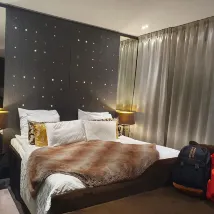It was a wonderful 3 nights stay in the lovely town of Rovaniemi. The hotel is located in the city center, which makes dining and shopping and getting around anywhere super convenient. The train station is also a short 5 minutes drive away. My room was clean, cosy, spacious and tastefully designed. Love the Finnish sauna; we went everyday! Also the breakfast spread was super lovely; love the crayfish salad. The hotel also uses Iittala and Marimekko tableware in the breakfast buffet as well as in the room. I love the Iittala cup they used in the room so much that I bought 2 for my house! Totally recommend this hotel if you visit Rovaniemi!