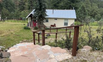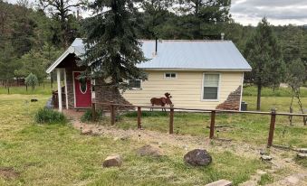 If you are looking for a place to unwind from the rat race of everyday life, you will love Ruidoso and our comfy cottage. We take pride in the "spic & span" cleanliness of this property. PRIVATE HOT TUB! Our cozy cottage offers you the seclusion of a quite area, surrounded by lovely, whispering pines and wildlife galore! Deer visit on a regular basis.....and massive elk drop in occasionally for a nice rest. It isn't unusual at all to see a group of beautiful wild horses. Bird lovers? Ruidoso has gorgeous varieties of hummingbirds! Have a cup of coffee, or glass of wine as you sit on our covered deck or out by the hot tub. Take in all the splendor nature has to offer or spend some time shopping in the many shops Ruidoso offers. Stroll through midtown, stop and enjoy a glass of wine. There are many restaurants in Ruidoso from Mexican food, to burgers, steaks, soups, and delicious desserts! Want more entertainment.....Ruidoso offers horse racing. Memorial Day thru Labor Day and for CHRISTMAS WE PUT UP A CHRISTMAS TREE! There are 3 casinos nearby....the Inn of the Mountain Gods offers Las Vegas style gambling and breathtaking views that overlook the lake! More adventurous.....try the zip line at Ski Apache or the Inn of the Mountain Gods. New Alpine Slide at Ski Apache… Fishing, canoe rentals, go karts, horseback riding, hiking, museums.......and lots of artwork. Several golf courses nearby. Find it all in Ruidoso. The cottage is 2 bdrm with addl sleeping on a queen sleeper sofa in living area. Large, covered deck. HOT TUB, INTERNET, 2 TV's (ROKU), central heat & air! Most times, you will not need air conditioning, but if you do, this property provides it. Always check road conditions and weather in winter months to be prepared. Four wheel drive & snow chains are recommended in winter months.
