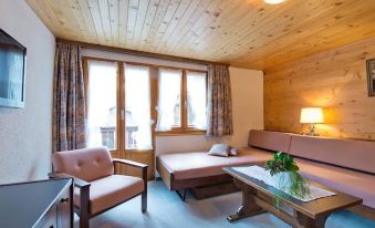 2 1/2-room apartment (4 beds, 36 m2), 2nd floor, 1 bedsitting room, 1 bedroom, dining-kitchen, shower/WC, flat screen TV, south-east balcony