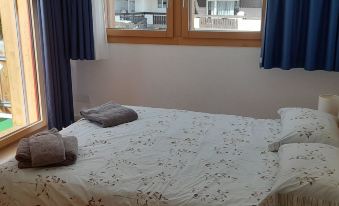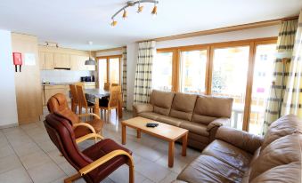 Nice 4-room apartment (100m2). Excellent location right next to the slopes (Ski-in and-out) and 5 minutes from the center away. Sleeps a maximum of 6. It features 3 bedrooms, 1 living room with modern open kitchen, 1 shower/WC, 1 bath/WC and a balcony with stunning views. Excellent Wifi Connection! A boot room for ski storage is available in the building along with amenities for the washing and drying of clothes. The apartment is non-smoking and no pets are permitted.