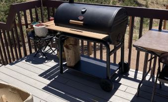 The Purple Sage Lodge sits on over 1 acre with no neighbors on adjacent lots for a serene setting. Sip your morning coffee or tea (or both!?) on the front patio as the sun rises over Challenger Peak or the back deck overlooking the San Luis Valley. Enjoy a brisk cool evening sitting around the fire pit and patio heat lamp, roasting marshmallows or grilling your favorite food while being warm and toasty. A Keurig machine for those who want a single cup, and Cuisinart for larger parties compliment a well-supplied coffee and tea bar. Feel at home in our fully equipped kitchen, which includes spices and other basic staples for your culinary cooking delights. A water purification system is installed to allow purified water for healthy drinking and cooking. The living room offers a cozy and tight knit atmosphere with a corner wood fireplace, books to read, and board games to choose from.