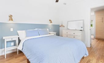 Original heart pine floors and large windows make the 2 bedroom, 1 bath cottage feel like your home away from home. Guests can enjoy ultra comfy queen-size beds and fully-equipped kitchen with a Keurig, coffee machine, Brita water filter (to avoid use of plastic bottles) and all cooking essentials. The cottage has a smart TV, desk, fast wifi and laundry, making it ideal for getaways short and long. The wraparound deck has a an outdoor dining table and a reading nook off of the primary bedroom. It also has a heated outdoor shower. In the cottage you'll also find a welcome book with curated recommendations for fantastic local restaurants, beaches and activities.