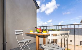 Small apartment house "Colette", 2 storeys, built in 2025. In the centre of Saint Coulomb, residential area (villas), excellent location: right in the centre but still quiet, 2.5 km from the sea, 2.5 km from the beach. In the house: lift, storage room for bicycles. Roofed, parking. Shop, grocery 500 m, supermarket 4.2 km, shopping centre 4.2 km, restaurant, bakery, café 500 m, bus stop "Bel Air" 700 m, railway station "Gare TGV St Malo" 9.2 km, ferry "Gare maritime du Naye" 11.5 km, sandy beach "Duguesclin" 2.5 km, thermal baths "Thermes marins de Saint Malo" 8 km. Golf course (18 hole) 22 km, riding stable 3 km. Nearby attractions: grand aquarium de St Malo 11 km, Saint Malo intramuros 12 km, Dinan 35 km, Dinard 19 km, Mont Saint Michel 37 km, Cancale 5 km. The keys‘ handover takes place by the agency Interhome in Cancale, 5 km. 2-room apartment 55 m2 on 2nd floor. Spacious and bright, comfortable and tasteful furnishings: large living/dining room with 1 double sofabed (1 x 140 cm, length 190 cm), TV (flat screen). Exit to the terrace. 1 room with 1 french bed (1 x 160 cm, length 200 cm). Open kitchen (3 induction hot plates, toaster, kettle, microwave, freezer, electric coffee machine, Capsules for coffee machine (Nespresso) extra). Exit to the terrace. Shower, sep. WC. Small terrace 7 m2, south facing position and west facing position. Balcony furniture. Facilities: washing machine, iron. Parking space n 17 (roofed, fenced 1 car). Please note: smoke alarm. Offer by a private individual according to Art. 155, IV of CGI.