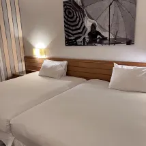 같은 호텔을 7일간 예약했습니다. 첫 번째 예약은 바다 전망 객실로 4일이었습니다. 두 번째 예약은 도로 근처에 침대가 1개밖에 없는 작은 방이었습니다. 객실이 다운그레이드되어 가격이 더 비쌌습니다. 더 이상 바다 전망 객실이 없습니다. 하지만 이 호텔은 니스 교외에 위치해 있어 시내 중심까지 직행하는 12번 버스가 있으며, 인근 기차역도 니스 주변 마을을 방문하기에 매우 편리합니다. 일반적으로 가격 대비 성능 비율이 상대적으로 높기 때문에 결국 관광 비수기입니다. 아침 식사는 종류가 적고 매우 간단합니다. 근처에 레스토랑 거리와 대형 슈퍼마켓이 있습니다.