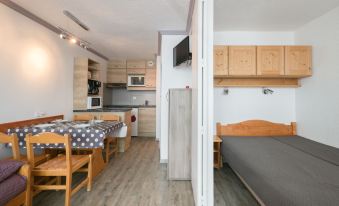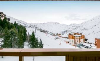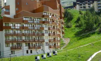 Residence "La Boédette". In the district of Reberty 1850, 30 m from the skiing area. In the complex: lift, storage room for skis. Public parking. Supermarket, shopping centre, restaurant 50 m, bus stop "Reberty 1850" 200 m. Sports centre 300 m, skisport facilities, slopes 30 m, ski school 100 m. Well-known ski regions can easily be reached: 3 Vallées. Please note: the photograph shows a typical example. Additional accommodations can be booked. "Boëdette 822 D", 2-room apartment 26 m2 on 8th floor, south facing position. Comfortable and beautiful furnishings: living/dining room with 1 pull-out bed (2 pers. 2 x 80 cm, length 190 cm), TV (flat screen), electric shutters. Exit to the balcony. 1 room with 1 french bed (1 x 140 cm, length 190 cm). Kitchenette (oven, dishwasher, 3 induction hot plates, kettle, microwave, electric coffee machine, raclette grill). Shower, sep. WC. Heating. Very beautiful view of the mountains and the ski run. Facilities: Internet (WiFi, extra). Please note: smoke alarm. 73257006643DP