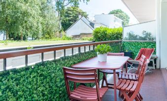 Residence, 5 storeys. 2 km from the centre of Saint-Nazaire, excellent location: right in the centre but still quiet, 100 m from the sea, 300 m from the beach. In the complex: lift. Single garage. Shop, supermarket 250 m, bus stop 100 m, railway station "Saint-Nazaire" 3 km, ferry "Chantiers Navals de l'Atlantique" 2 km, sandy beach "Plage de Villès Martin" 1 km, indoor swimming pool 1 km. Tennis 1 km. Nearby attractions: Plage de Monsieur Hulot-St Marc sur Mer 6 km, Pornichet-La Baule 12 km, Parc Régional de Brière-Guérande 18 km, Le Croisic 28 km, Pornic 30 km, Nantes 65 km. Hiking paths: GR34 100 m. "Les Pêcheries", 2-room apartment 56 m2 on 1st floor. Bright, comfortable furnishings: entrance hall. Living room with 1 sofabed (130 cm, length 190 cm), TV (flat screen). Exit to the balcony. 1 room with 1 double bed (2 x 80 cm, length 200 cm). Exit to the balcony. Kitchen (oven, dishwasher, 3 gas rings, toaster, kettle, microwave, freezer, electric coffee machine) with small dining table. Bathroom, sep. WC. Gas heating. Balcony. Balcony furniture. Beautiful view of the sea. Facilities: washing machine, iron. Internet (WiFi, free). Please note: non-smokers only. Smoke alarm. Offer by a private individual according to Art. 155, IV of CGI. FR 666 18
