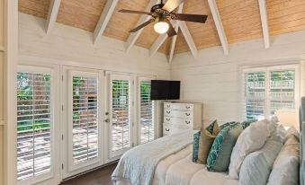 Everything about this cottage was wonderful. It’s absolutely perfect for enjoying family with plenty of space suited for visiting, meals, watching movies or games on tv, or just relaxing in peace. The outside area is gorgeous and well suited for lounging. The distance to the beach is super short and the golf cart offered fun transportation to many fun spots on the island. Everything you need is there:kitchen setup, beach toweks, beach chairs. Communication with the hostess was also amazing! I just can’t say enough good things. On our second day there, we were talking about when we could come back!