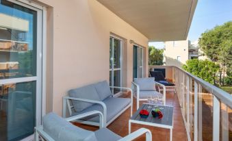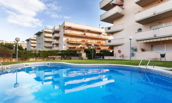 Small, cosy apartment block "Montserrada". In the resort La Pineda, in a busy position, 450 m from the sea. For shared use: garden with lawn, swimming pool (10 x 6 m, depth 100 - 160 cm, seasonal availability: 01.Jan. - 31.Dec.). Outdoor shower, children's playground. In the house: lift. Roofed, parking, communal covered parking. Restaurant, bar 450 m, bus stop "Bus La Plana parada El Raco" 300 m, railway station "Estación Tarragona" 8 km, sandy beach 450 m. The owner does not accept any groups. The owner does not accept any youth groups. "Montserrada", 3-room apartment 60 m2 on 2nd floor. Comfortable furnishings: living/dining room with TV and flat screen. Exit to the terrace. 1 room with 1 french bed (160 cm, length 200 cm). 1 room with 1 french bed (160 cm, length 200 cm). Kitchen (oven, dishwasher, 4 ceramic glass hob hotplates, toaster, kettle, electric coffee machine). Bath/bidet/WC. Air-conditioning, forced-air heating. Facilities: washing machine, iron, hair dryer. Internet (WiFi, free). Please note: non-smokers only. HUTT-074302