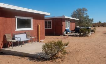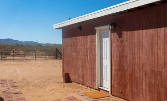My property is about 15 minutes from Yucca Valley and 25 minutes from the Joshua Tree National Park Welcome Center. Access to the house is via a dirt road but it is only about a half mile off a very nicely paved road. Except in pouring rain or snow, any type of car should have no trouble accessing the property. There is plenty of parking (2.5 acres of it!). I have a lockbox with keys in it. You'll receive an access code the day of your check in.