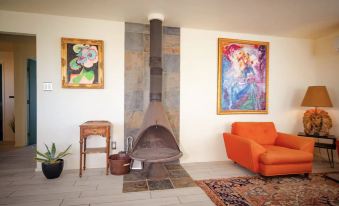 Enjoy the hot tub overlooking the desert landscape or cozy up to the vintage Malm fireplace in the evening!