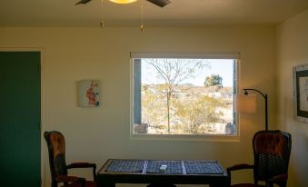 Take a break and unwind at this peaceful oasis. Located on an expansive 6 acre lot with magnificent views of Goat Mountain. Minutes to the Integratron, La Copine, & Landers Brew. Down the road from Pioneertown, Yucca Valley and Joshua Tree. This historic mining homestead built in the 1930's was later occupied by the infamous George Van Tassel while he constructed the Integration.