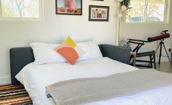 Kick back and relax in this calm, stylish space. Fully renovated and stocked with the essentials. Recharge outside on the private patio with cowboy soaking tub and shower. Relax in the hot tub under the stars. At night, lay in the hammocks and stargaze, or roast some marshmallows on the fire pit. Inside you'll find a super comfy Queen size bed, a dedicated workspace, and wifi for streaming. Modern kitchen is fully stocked, full-size W/D available for your use. RV hookups onsite for added fee.About pets:Pets allowed: dogs less than 50 lbs per pet (limit 2 pets total).About checkOut:Check out before 11:00 AM.About children:Children allowed: ages 0-17.About customRules:Outside quiet hours are 10pm - 8am.NO SMOKING indoors. There will be a $300 cleaning fee for violations..About checkIn:Check in after 4:00 PM.About smoking:Smoking is not permitted.About minBookingAge:Minimum age to rent: 18.About events:No events allowed.