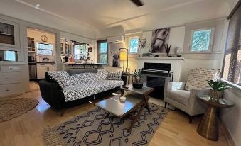 Inside, discover a sanctuary of warmth and intimacy. Our cozy 2-bedroom retreat invites you to unwind in style, with a full kitchen and bath ensuring your every comfort is met. Whether you're savoring a well-crafted breakfast across the street at our neighborhood breakfast haunt or snuggled up with a loved one in front of the fireplace, every moment here is infused with a sense of belonging and contentment.