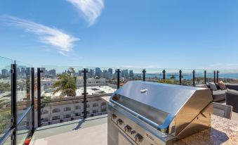 ✔ Rooftop Sky Lounge – Full views of the city skyline & bay with firepit & outdoor kitchen.