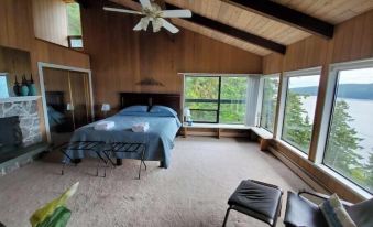 From the covered decks and floor-to-ceiling windows, you will have a 180⁰ westward view of spectacular sunsets, watch the sea planes land and depart from the bay, as sailboats dance on the waves. You will overlook historic Rosario Resort, and be eye level with bald eagles, soaring along the cliffs on the fragrant ocean breeze. The expansive decks are perfect for relaxing after your day’s adventures, while making a delicious barbeque dinner.