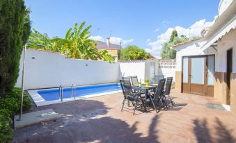 Playa Muchavista 1 km from Playa Muchavistsa: Apartment for 2 people is next to the main house. Another apartment for 2 people above the main house and exterior staircase very large, comfortable terraced house "Las Islas", 2 storeys, semi-detached, renovated in 2021. On the outskirts Playa San Juan de Alicante, in a quiet, sunny position, 1.3 km from the sea, 1.3 km from the beach. Private: property (fenced), swimming pool (6 x 3 m, depth 150 - 150 cm, seasonal availability: 01.Jan. - 31.Dec.). Terrace, garden furniture, parking on the premises. Supermarket 1.3 km, restaurant 1.3 km, bar 1.3 km, tram "Benidorm" 32 km, bus stop "N332 – Carrefour (Sant Joan)" 3 km, railway station "Alicante" 12 km, underground station "Benidorm" 32 km, ferry "Dénia" 80 km, sandy beach "Platja del Carrer de la Mar" 3 km. Nearby attractions: Alicante 10 km, Aeropuerto Alicante 25 km, Benidorm 38 km, Elche 36 km, Altea 45 km, Santa Pola. Please note: car recommended. Baby equipment on request. The owner does not accept any youth groups. Neighbourhood highly sensitive to noise. Quietness and good behaviour expected. "Las Islas", 6-room terraced house 370 m2 on 2 levels. Object suitable for 10 adults. Spacious and bright, partly with sloping ceilings, fully renovated in 2021, comfortable and tasteful furnishings: living/dining room 32 m2 with digital TV and air conditioning. Exit to the terrace, to the swimming pool. 1 room 16 m2 with 1 french bed (150 cm, length 190 cm), air conditioning. 2 rooms 8 m2, each room with 2 beds (90 cm, length 190 cm). Large kitchen (oven, 3 induction hot plates, toaster, kettle, microwave, freezer, electric coffee machine). Exit to the terrace, to the swimming pool. Shower/WC. Electric heating. Upper floor: 12 m2, Studio with 1 french bed (135 cm, length 190 cm), shower/WC and air conditioning. 7 m2, with sloping ceilings, Studio, ceiling height 50 - 190 cm with 1 french bed (135 cm, length 190 cm), TV and air conditioning. Top floor: living/sleeping room with 1 french bed (135 cm, length 190 cm), air conditioning. Terrace 18 m2. Terrace furniture, deck chairs (2). View of the swimming pool and the garden. Facilities: washing machine, iron, hair dryer. Internet (WiFi, free). Parking (1 car). Please note: one double bedroom is outside the apartment. an apartment for 2 people is next to the main house. Another apartment for 2 people above the main house and external staircase Possibility of delivery of keys in the apartment from 4:00 p.m. to 6:00 p.m. with an extra cost of €30.00. VT-464002-A ESFCTU00000302400105633700000000000000000VT-464002-A5