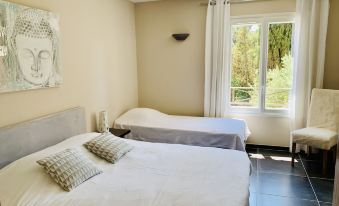 sandy beaches nearby, hotel and restaurant La Farandole nearby and a waterfront fish restaurant 464 bar Harbor, with panoramic sea views. The castellet circuit is 12 kilometers away. The village of Le Castellet is 8 km away and you can visit the cellars of very good Bandol wines. The Golf de la Fregate is also close, it is one of the most beautiful golf courses in the region, with a superb sea view. the surrounding villages are magnificent: the village of bandol, the village of castellet which dominates the wine estates of bandol, as well as the village of cadiere, with the famous and very good restaurant from Berard, not to be missed.About pets:Pets allowed: dogs (limit 1 total).Sur demande. 80 euros la semaine pour 1 animal..About checkOut:Check out before 10:00 AM.About children:Children allowed: ages 0-17.About checkIn:Check in after 4:00 PM.About smoking:Smoking allowed: in designated areas.Ne pas fumer ds la maison . Merci par avance.About minBookingAge:Minimum age to rent: 18.About events:No events allowed.
