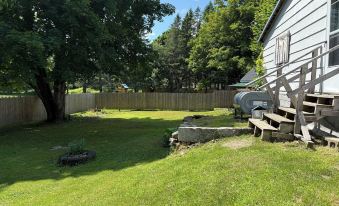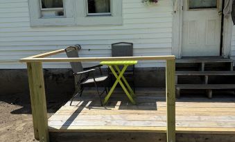 This is an old house we aquired. We have been upgrading and adding to it as we go along. There was a mention of that after 2 years. We have plans to upgrade the entry in the near future. We work hard to provide a most satisfactory stay and hope to reflect that in reviews. We live on the property if anything is not right we would like to correct any issues. Please enjoy your stay. About pets:Pets allowed: dogs less than 50 lbs per pet (limit 2 pets total).About checkOut:Check out before 11:00 AM.About children:Adults only.About customRules:I live on premise, please leave it neat and let me know if you need anything. Please park parallel with building and not on the lawn..Pets must be trained, use crate if you're going to be away a period of time. Must be treated for ticks/ fleas. Must be leashed outside..About checkIn:Check in after 4:00 PM.About smoking:Smoking is not permitted.Quiet after 10, family friendly neighborhood..About minBookingAge:Minimum age to rent: 21.About events:No events allowed.