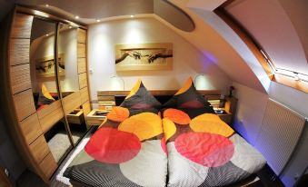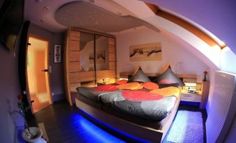 Bedroom 1 is equipped with a full-king size bed (1.80 m x 2.00 m) with adjustable slatted frames. A large flat screen TV and beech heartwood furniture complete the outstanding features of this excellent room. The absolute highlight of this room however is the starry skies which has been integrated in the ceiling - relax under your own star filled sky!