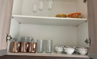 The fully equipped kitchen offers everything you need to prepare delicious meals, including modern appliances and ample counter space for culinary endeavors.