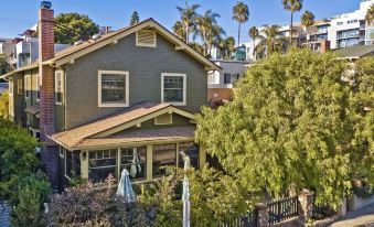Gorgeous ocean view Craftsman carriage house. Best of everything with designer finishes and original artwork. Air-conditioned. Fully equipped kitchen, comfortable dining for 6. Washer/dryer. Two flat screen TVs. Queen-sized bed in downstairs bedroom, and comfy queen-sized sofa-bed upstairs in living room. Private patio and BBQ. Beach equipment, razor scooters for kids (and helmets). Steps to the beach, the pier, five-star hotels, world-class restaurants, and the great, big, beautiful Pacific Ocean! Walk score 10/10