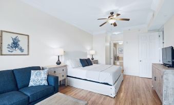 This modern coastal inspired condo boasts gorgeous new white quartz countertops in all 4 baths and kitchen, fresh paint throughout, new stainless appliances (refrigerator, oven, microwave), new plantation shutters, a large one level kitchen island with four stools at counter level, and new furniture throughout. The expansive primary suite opens to the fabulous views on the terrace and can be enjoyed from the bedroom as well from the queen sleeper sofa and/or master king bed. A perfect work from home space. Two additional bedrooms hold a queen bed and 4 twins (2 bunks), all with their own en-suite bathrooms, TVs, luggage racks and overhead fans. Also included is a powder room and laundry room with an iron and ironing board. A pack n play is available upon request.