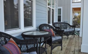 Whether preparing a meal in the well-stocked kitchen, playing games, or lounging on the comfy sectional watching a movie on the Smart TV, memory-making family time is encouraged by the bright, airy, and open floor plan. We have 2 front porches and a secluded back patio with seating and a gas barbecue grill for relaxing outside. 4 bikes are available for your use during your stay.